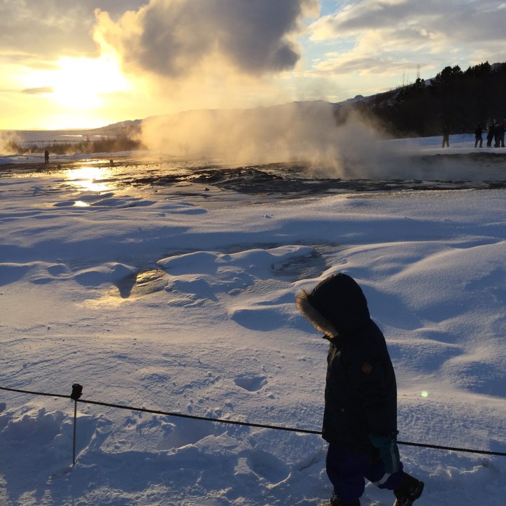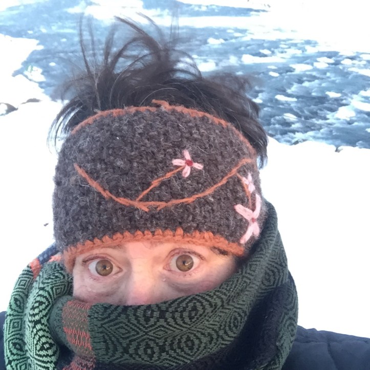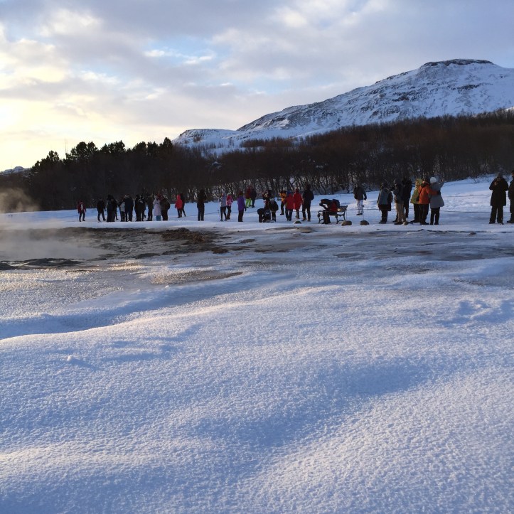 I had on jeans and a fleece and wool socks and my big down coat. Still, I was cold for much of the afternoon. Had a head band and mittens, and a scarf. But at -4 C, it just wasn’t enough. I had not expected the weather to be so cold. People are always saying that Iceland really isn’t that cold in the winter – just dark. And wet. I suppose arriving here this week was a bit like visiting Seattle during a freak cold front, with miles of snow having just fallen and temperatures never lifting above freezing. Much of the afternoon, I looked like this: