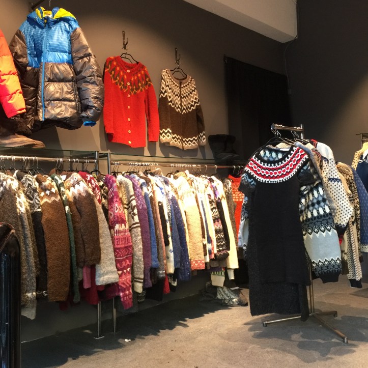 Enjoy the price. You’ll not hear of anything so inexpensive for the remainder of my time in Iceland. The rest of the shop’s wares were the usual thrift store fare. Outlandish, sequined and bobbled dresses, crazy hats, striped dinner jackets – you know the scene. But those sweaters. Man oh man. $30 to $70 when they are $200 and more for handmade, Icelandic wool sweaters produced here in Iceland. Lucky for me, I already have one at home. It doesn’t get worn enough as it’s hardly ever sufficiently cold to wear it. Truly, I have no need of another.