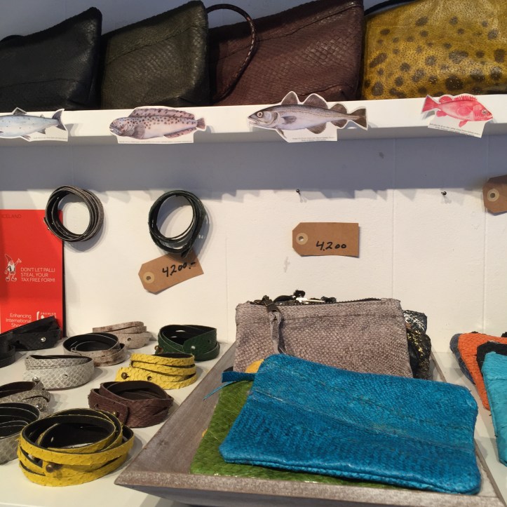 I am completely enchanted by this tanned fish skin. I’ve never seen anything like it, nor have I seen it anywhere other than Iceland. It’s made from a waste product, is perfectly as strong as other animal leathers, and takes dye beautifully. I’ve got it in mind to visit the tannery (way up north) when we put a trip together. Very, very cool stuff. So I bought a small bag, about 4″ x 6″ and told myself that THIS (plus cape) would be my purchase for the trip.