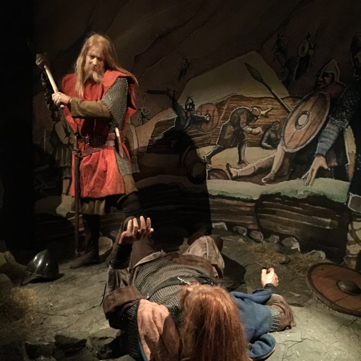 By this time, I’d been walking outside for almost four hours. I was cold and pretty tired. I had a map though and knew the Saga Museum was not much further. I found it and slipped inside. There was no one around. A restaurant and bar was on one side (empty, with hipster bartender cleaning tables), gift shop on the other (quite extensive), and a desk to approach for entry. I purchased a ticket. I dropped my big coat and bag in a locker. I was given a headset and tiny recording apparatus and sent in through some doors.