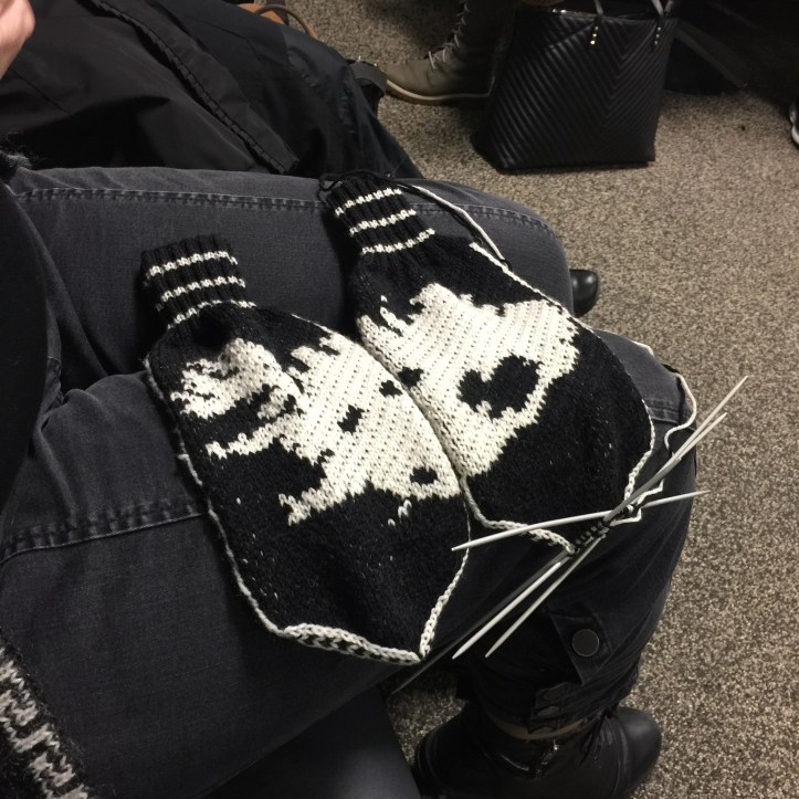 A lady sat down next to me. Glancing over at my hands, she did a doubletake and said in thickly accented English, “You are not from here”. I laughed and said, “No.” She responded “I know, because you are doing it backwards!” I was knitting a sock, of course, and she’d noticed that I knit American style, moving the yarn with my right hand. Most Europeans knit in what we call Continental style, “throwing” the yarn with their left hand. It’s a much more efficient set of movements. Lots of American knitters work in that style as well, my mother and sister included. I don’t know why I knit American or where I learned to do so. Too late now to switch!