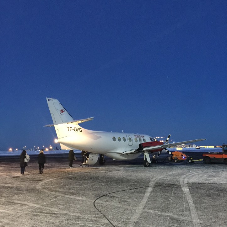 Iceland is populated primarily along the coast. The interior of the country, with difficult terrain that is often inaccessible through much of the year. Many folks like to rent a car and drive the entire perimeter on the famous ring road. However, with limited time, we were offered the chance to fly to the north coast. Our destination, Husavik, was a little less than halfway around the island from Reykjavik. What would normally be a 5- 6 hour drive (in good conditions) was condensed to a mere 50 minute flight. Magic!