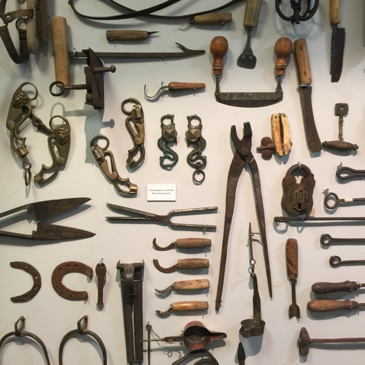 Then off to two more museums.The tiny Exploration Museum focused on the period of time the Apollo astronauts trained for their missions in Iceland, then continued on with a history of Viking and Icelandic explorers. Then to the nearby Safnahusid Museum, which focused on the natural history of the area and the history of the population since settlement. I took special interest in the early agricultural life of the residents plus of course, historic methods for making clothing. There were two spinning wheels on display with mechanisms I’ve never seen before. They were fascinating.