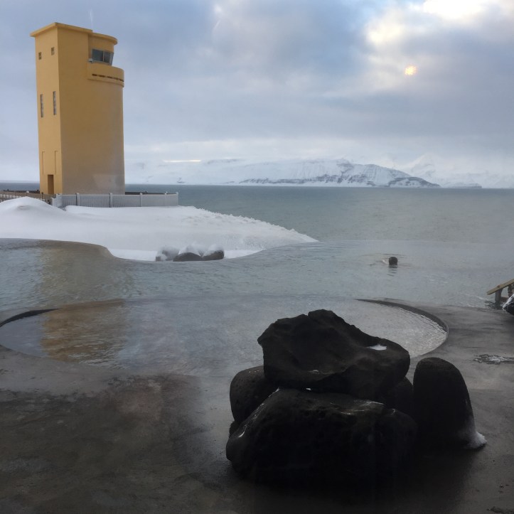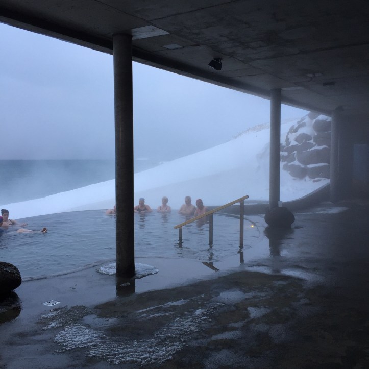 Our day finished with a lovely visit to GeoSea, a new set of thermal pools recently built on the bluffs above the town. Beautifully designed, artfully sighted, and immaculately run, the place was a welcome relief from the cold wind and the on-again-off-again (of the bus) nature of the hosted tour. I think the pictures say it all.