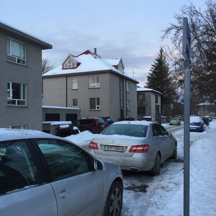 Ever drive in the front seat of a car with a total stranger for over an hour? My first thought was “Oh crap. This is going to be an hour of uncomfortable silence or forced conversation. I’m not going to like either.” Instead, I found myself engaged in a friendly, lively conversation that ranged from his experiences growing up in a small town on the north coast and later becoming a pilot for international flights to the current debate in Iceland about whether the country should change to 100% electronic money via cards. And those conversations led into deeper topics like the Icelandic national identity, the connections between rural and urban life, the nature of criminality, and a host of other things. I’m always amazed when someone can joke and “get” jokes made in another language. I’d not realized how much my conversational style involves humor. I would say something then think “Oh goodness, he’ll have no idea what I’m talking about or what that’s in reference to or how that was a play on words” But he always did! So we had a lot of laughs. We also observed multiple cars by the side of the road and encountered what I thought of as a snowstorm during the drive. Kiddi’s comment: “Oh, this is not a storm. A storm is when you cannot see the car in front of you and must drive based on the five feet worth of pavement markings you can see.” Yikes. I think I told him half a dozen times how glad I was that he was driving!