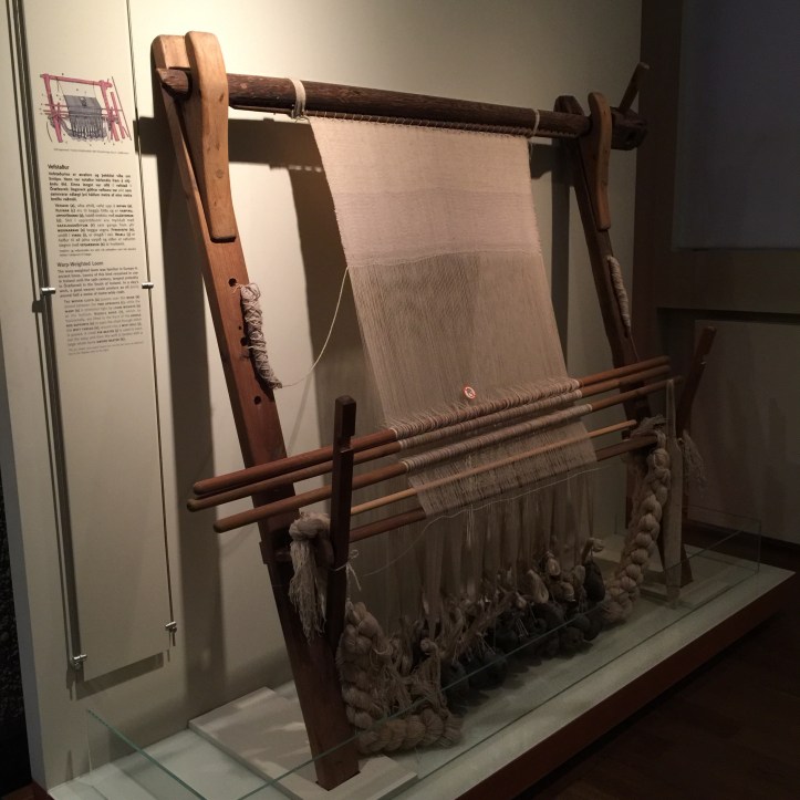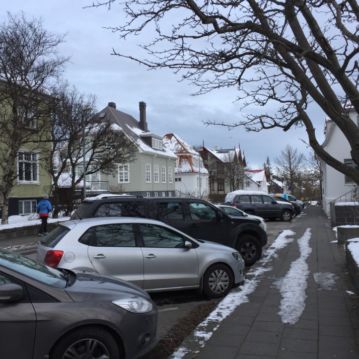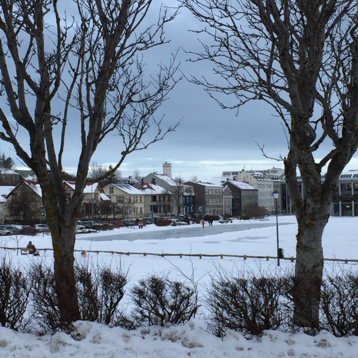 One stop before the wool escapades though – and it was a thoroughly worthwhile one – the National Museum of Iceland. These people know how to do museums. Even the museums in tiny, remote Husavik were artfully arranged and well presented. Let’s ignore, for the moment, my experience at the Saga Museum in Reykjavik, the one about the Vikings. I’m going to think of that one as an odd duck in a family of swans. (Nothing against ducks. I quite like them.) The National Museum is elegant and creative. I could have spent double my allowed time perusing it’s collections. And because it did not open until 10 am, I walked there from the hotel, again exploring neighborhoods and looking for how Reykjavikians live in their hometown. I found an array of housing, folks taking Sunday morning walks with their dogs, parents dragging kids on the snowy lawn of a park, what I THINK was a broad river with some folks skating on a cleared patch, and heard the pealing of church bells in the frosty air just about every half hour.