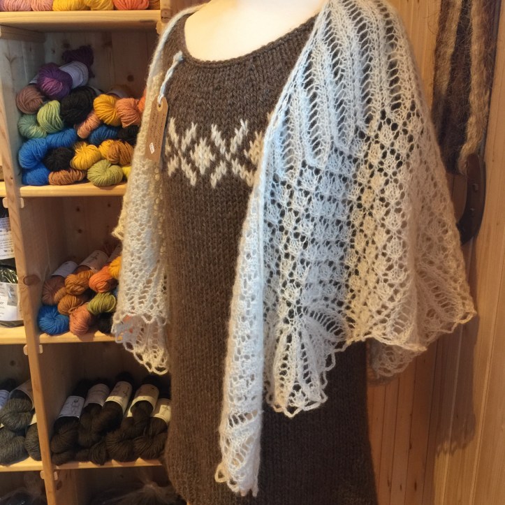 That’s why I’m so impressed with Hulda Brynjoldsdottir and her husband Tyrfinger Sveinsson. They purchased an entire mini mill from Belfast Mini Mills, Ltd, located on Price Edward Island in Canada, had it shipped over to Iceland, went through the training to run it all, and now are producing a beautiful line of yarns right on their farm. And I really do mean beautiful. The yarn, produced from the same Icelandic sheep’s wool that makes Lopi (not usually thought of as very soft or comfortable-feeling yarn) has a beautiful sheen, is much softer than any yarn I’ve ever encountered made from Icelandic sheep’s wool, and knits up into beautiful – and strong – garments. If you want to take a look at their website, visit them at https://uppspuni.is
