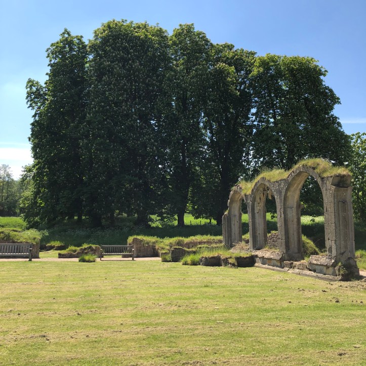 The next day, while Heather and the group went for a there-and-back walk to Snowshill manor, I stayed behind to take care of administrative work. I set up my computer in the Broadway Hotel’s sitting room and enjoyed my day watching folks come and go. Then the next morning, we headed out for a walk to nearby Hailes Abbey, a Cistercian monastery abandoned after Henry VIII’s break with the Catholic church. As I begin to understand the amount of booty gathered in the form of land, riches, and consolidation of power, I can’t help but question just how much his actions were motivated by wanting Anne Boleyn and how much were due to his shrewd assessment of the benefits involved. Hailes abbey soon fell to ruins. We had a picnic next to the extant (and much more contemporary) chapel.