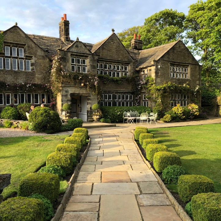 Well, here I am at the lovely, historic Holdsworth House. The building and grounds are fantastic, dating back to the 13th century. We’ve dropped in to the town of Halifax for a brief visit. We’ll be back shortly with a tour group, so I’ll get to tell you more about this area later. If the building looks familiar at all, it’s because it was the film set for a wedding in PBS’s Last Tango in Paris. The whole area is green and dramatically hilly, with stone rowhouses climbing the sides of hills like so many long, grey caterpillars.