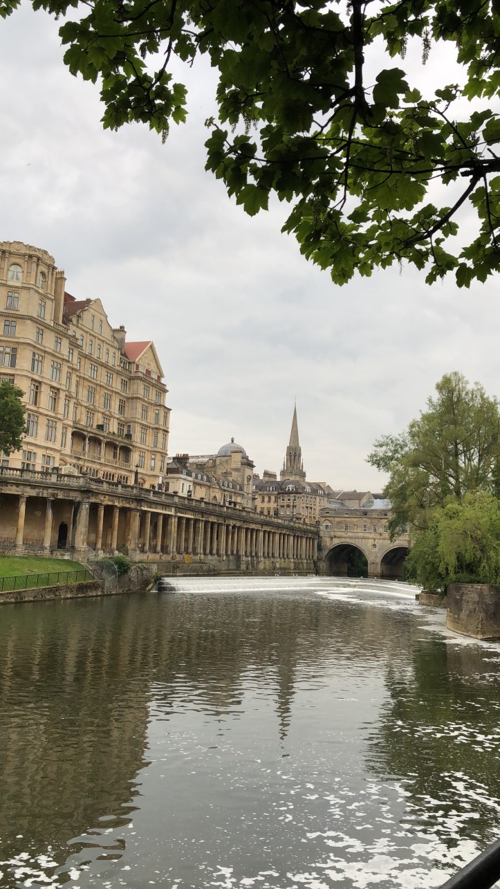 - arrival and sightseeing in Bath. We arrived on the first evening of the annual Bath Festival. By 5pm, there were musicians performing at multiple sites all over town, both inside and outside. One of the acoustic sites was in an alley just next to our hotel. I heard this choral group performing before dinner. Later, I fell asleep to a guy singing an playing acoustic guitar. I was also lucky enough to happen upon a thirty piece drum band (something like a Mardi Gras marching extravaganza), a string orchestra playing Hungarian folk tunes, and a 7 piece ukulele band. Our next day was spent in visits at the Thermae spa, the Roman Baths, the Bath Fashion Museum (outstanding!) and shopping. (Posts about these sites and activities from my 2016 visit can be seen here: https://studiobriddsang.com/2016/06/06/a-day-in-bath/ and here: https://studiobriddsang.com/2016/06/06/remains-of-the-day-in-bath/ ) Our last day with the group was busy and great fun. I do love Bath.