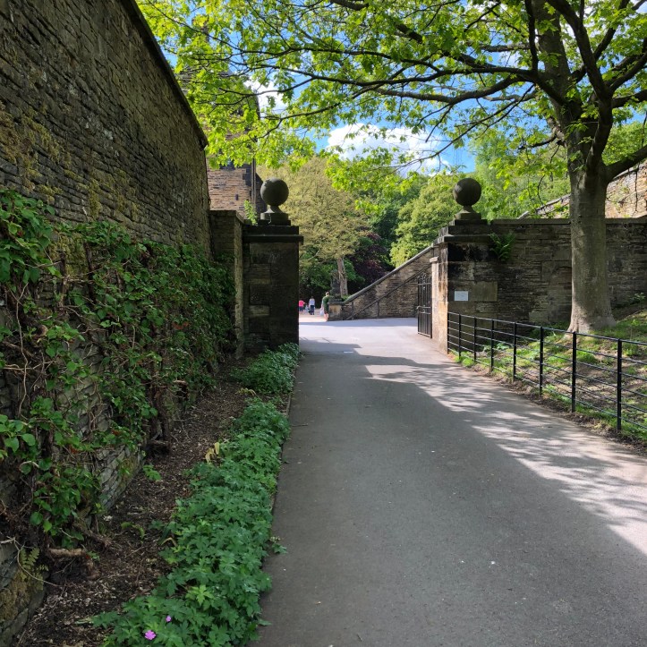 I found Halifax itself to be a most interesting town. I’m inspired to do more reading re: its history and development. The buildings, primarily constructed of area stone, are not warm and golden like those in the Cotsolds. Instead they are grey, brown, black and tan. Everything feels a bit gritty and working class. I absolutely love it. Also, the entire town is strung along a deep (what we would call) canyon, with city streets climbing sharply up both sides from the river. It was a pre-industrial powerhouse of woolen cloth – sheep farms, carding, spinning, weaving and trade in cloth. We visited the Piece Hall, a Georgian era built marketplace for all things related to the cloth trade. More on that later, as we’ll return on the 29th with a group and have a proper, guided tour.