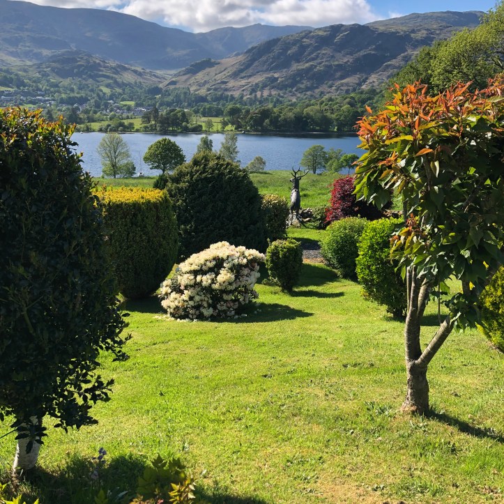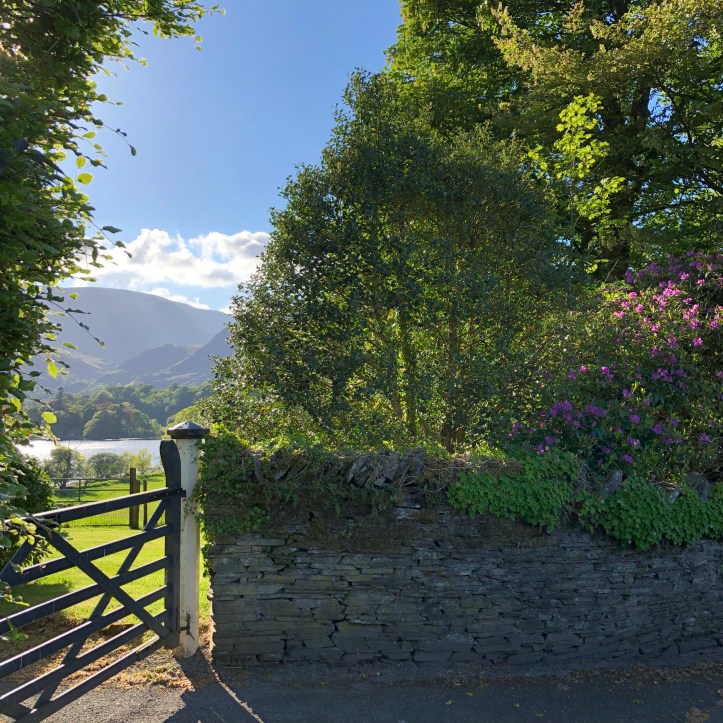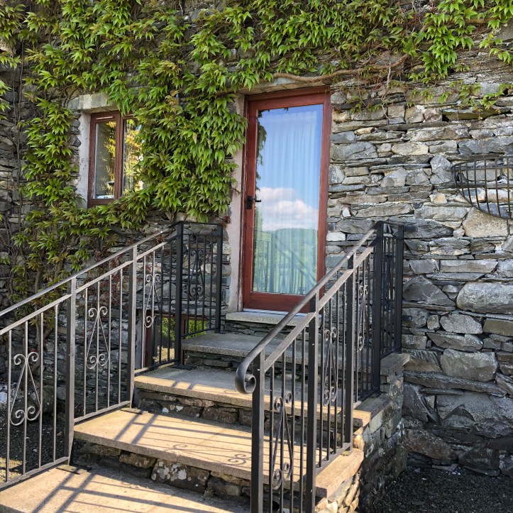 And then finally, a turn into the Lake District, ten miles of tiny, stone-wall and hedge-lined roads (and I do mean tiny – maybe 8-9 feet wide) during which Heather’s jaw was clenched in a grimace of terror. Mine too, but I wasn’t driving. But all worth it, for in the end we arrived here: Common Bank Farm along Coniston Water (aka lake).
