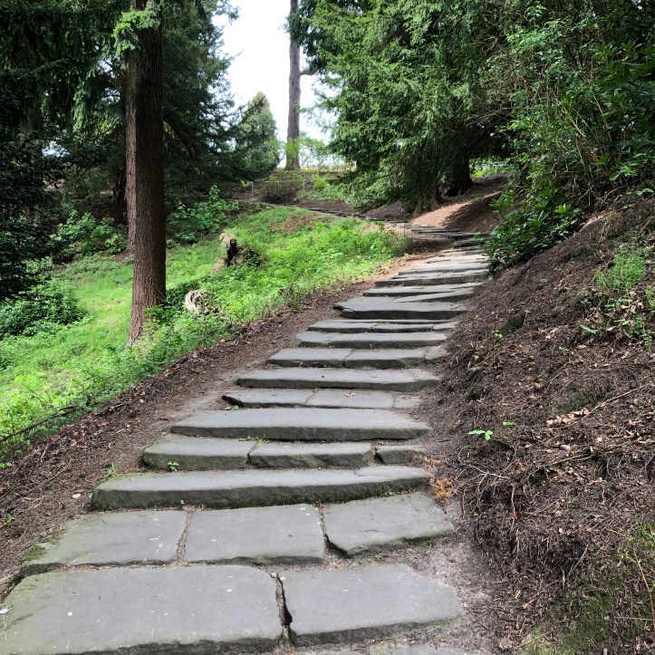 Finally, by 4:00, I noticed it had stopped raining. A half hour later, the sun had broken through the clouds and was sending bright shafts of goodness down onto the glistening, green everything. So I saved my work, found my shoes, threw wallet, raincoat, knitting project (’cause you never know when you might want to knit) and phone into my backpack. I was out the door in five minutes.