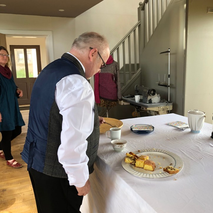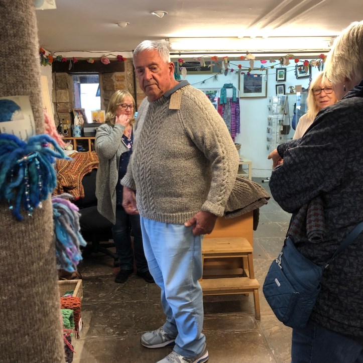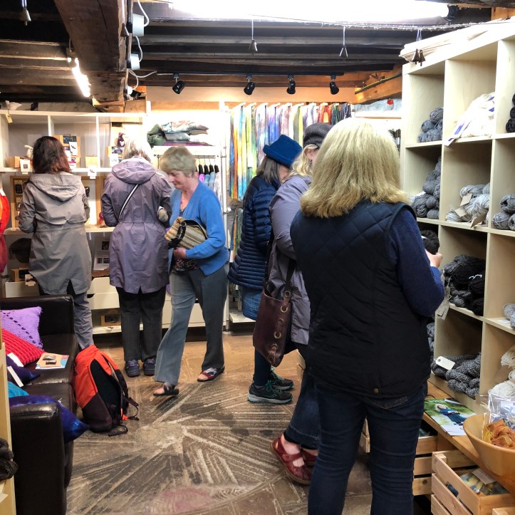 Okay, I’m having some fun at Stephen’s expense. However, I will tell you he was a great addition to our tour. Stephen lives in the States. He’s married to an American and lives in Oklahoma. But for years he was a tour guide in the UK. He’s a blue badge guide. That means he had to go through lots and lots of training in order to tell visitors everything about everywhere they visit. These days, he comes over to the UK for part of the year to do some driving and lead his own tours. We were lucky enough to have him as a driver. It was an absolute pleasure, as he shared lots of info and history all along the way. He also spent plenty of time jawing with our sole male tour participant, Roger. He even took Roger to a special visit while we were all doing yarny things one day. I think we were at a workshop. Those two went off to visit a fishing museum or some such thing. Bravo, Stephen!