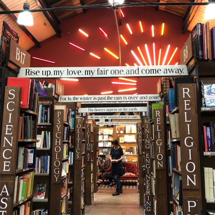 I also visited Barter Books, a fantastic place. It’s one of the largest secondhand bookstores in all the UK, having taken over the former train station in Alnwick. The entire train station building. You could bring your dogs, have a glass of wine… Literary quotes and poetry were posted all over the place. They had an amazing selection of collectibles. Yum.