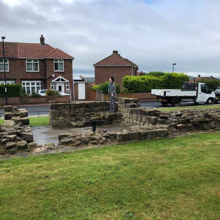 We stopped at several spots along Hadrian’s wall. First at an extant section of the wall located right smack in the middle of a suburban neighborhood. Then the group split to visit the archaeological dig at Vindolanda or the Roman Museum nearby, then we reconvened to stop in another spot with a great view of the wall snaking over hills and valleys.
