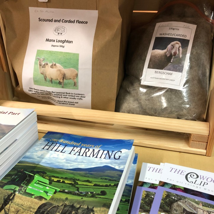 We continued south, down into the county of Cumbria. We were approaching the Lake District. Luckily, Heather knew of this. tiny shop in a tiny town, called The Wool Clip. It was the most fantastic depository of breed specific yarns, wool for spinning, finished textile goodies (felted, woven, knitted, sewn, and more). We were in Heaven!