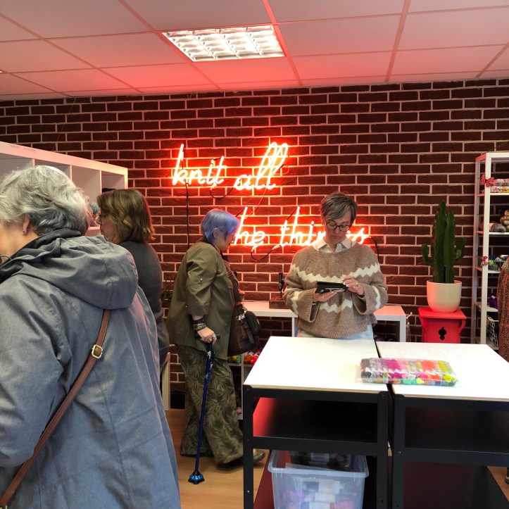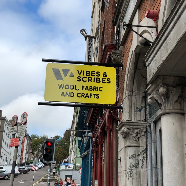 Vibes & Scribes started as a book stre, then began carrying craft supplies for sewing, haberdashery, etc Then they got into yarn. The owner, Joan, had so many requests for a local, Irish wool, that she began to work on sourcing it herself. Irish yarn from Irish sheep, cleaned, milled, spun and dyed in Ireland. Believe it or not, such a thing did not exist when she started looking around. More on this issue later. So Vibes &Scribes has started their own effort to produce that very thing — plus add the word organic to it. Now you’ve made a tough challenge even tougher. But Joan is convinced there’s a market for the yarn. Based on what I saw and have seen since that day, I’m betting she’s right.
