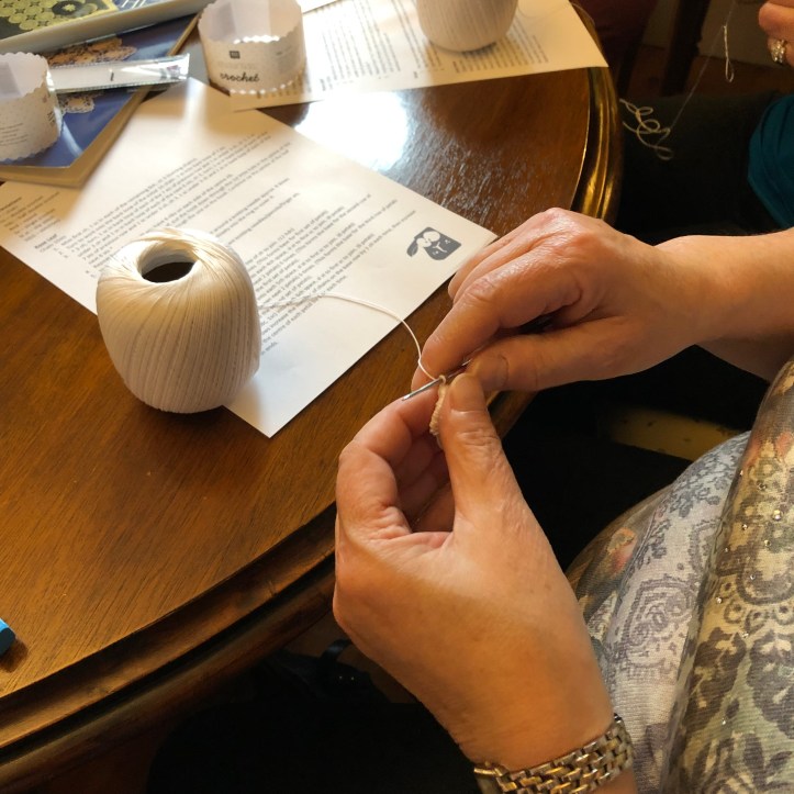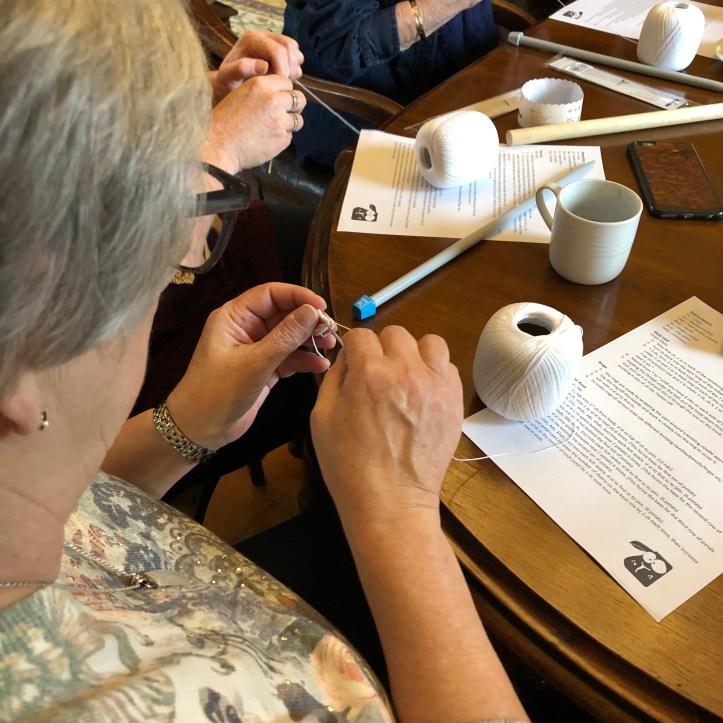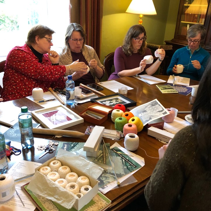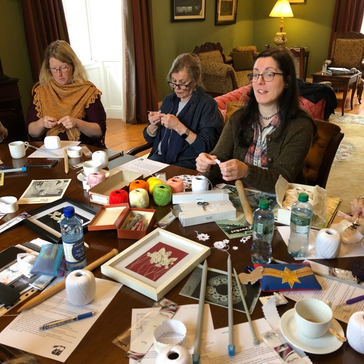 Viewmont House provided us with a comfortable home in Longford. Our rooms were large and gracious, meals wonderful, and the upstairs library made a cozy, well lit space for our morning workshop with Patricia. Though she’s a knitwear designer, she is also a fine practitioner of traditional Irish crochet techniques. With tiny crochet hooks and fine cotton yarn, the group went to work!