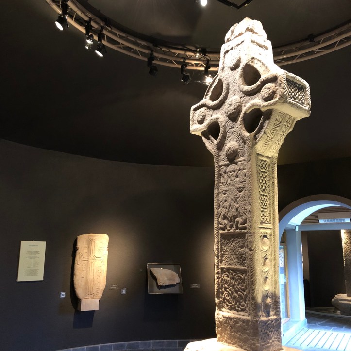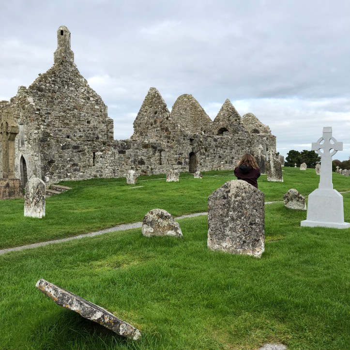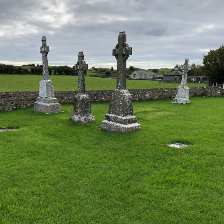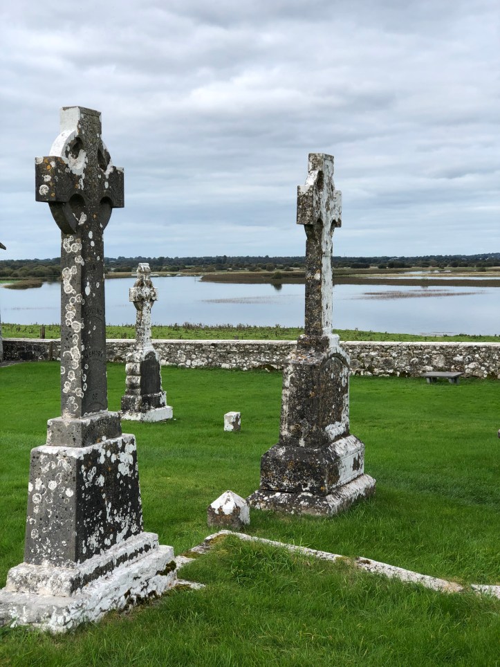 Clanmacnoise is a sixth century monastery established by St. Ciaran (pronounced kee-ruhn). Its a hauntingly beautiful site, located along the river. Multiple high crosses were recovered here and much of the original buildings still stand – a cathedral, several churches and two round towers. Several of the high kings of Tara and Connacht are buried here. There’s now a museum and cafe on site as well.
