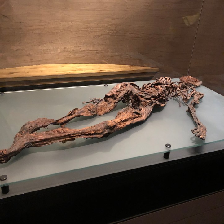 That is a body. Recovered from and fully preserved by the Irish bog in which it was found. Kind of morbid but also incredibly fascinating. There are several at the museum. They actually provide a glimpse into the life of Ireland’s people at the various times in which they lived. Their clothes, bodies, even stomach contents were intricately evaluated by scientists. Fascinating stuff!