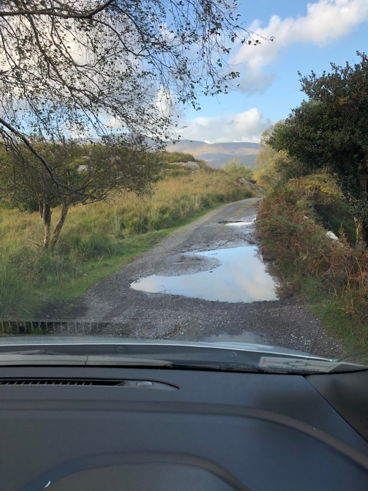 At one point I thought I’d take a secondary road over to Kenmare. Ha! The road quickly became a rutted mess. I turned my tiny car around on a tiny road, praying all the while that I didn’t do some terrible damage and render myself stranded. A bit stressful, yes, but oh so delightfully free of any other traffic or humans!