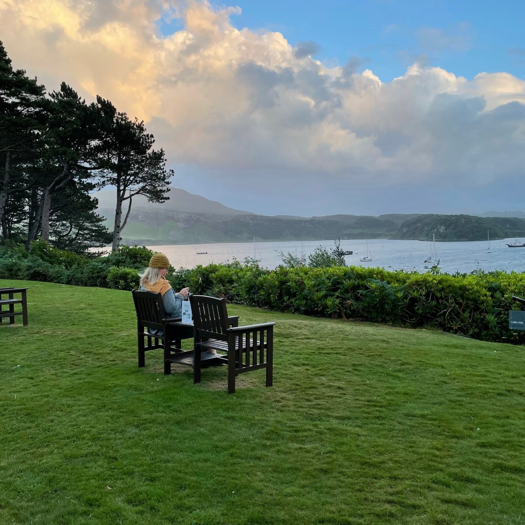 The scenery and gardens are spectacular! Contrasted with the realities of COVID cancellations- the lost opportunities and funds, it’s stark reminder of where we’ve been- plus not being able to book there again is really disheartening. Bummer. Hotel number two is my version of camping in where they don’t put the little mints on my pillow and all my budget usually allows. But the beauty outside more than makes up for it. And the Skye Weavers. Be still my wooly heart.