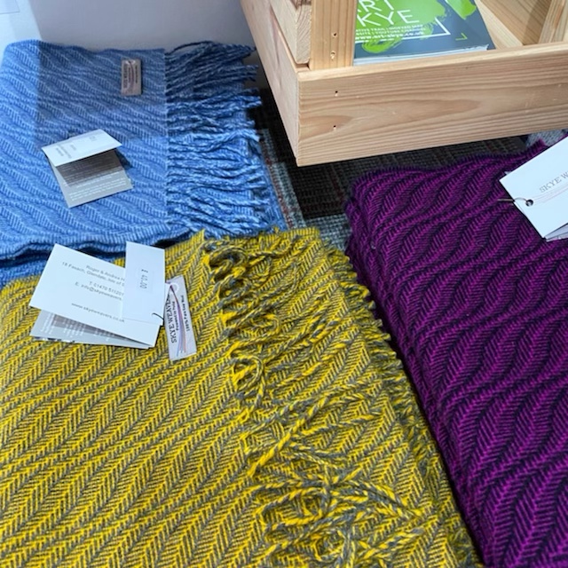 And onward then, to a tiny, tiny, tiny weaving studio on the far Duirinish peninsula. Skye Weavers! Herbie did his very best to get us there. We had a great visit with one of the owners, Roger. Beautiful work.