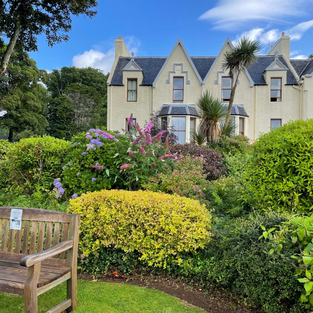 But we shall find another beautiful but also homey hotel here on Skye. In fact, we set out after lunch to visit two we have in mind. We also stopped in at Dunvegan Castle. I’ve never been there. It’s large, imposing and homely. But the gardens were spectacular. I have to tell you, some castles in England and Scotland are beyond spectacular. But some are, well… I wouldn’t choose to live in them under any circumstances. Nor, I think, would you. Even though their settings are spectacular. Dunvegan Castle is one of those, I’m afraid.