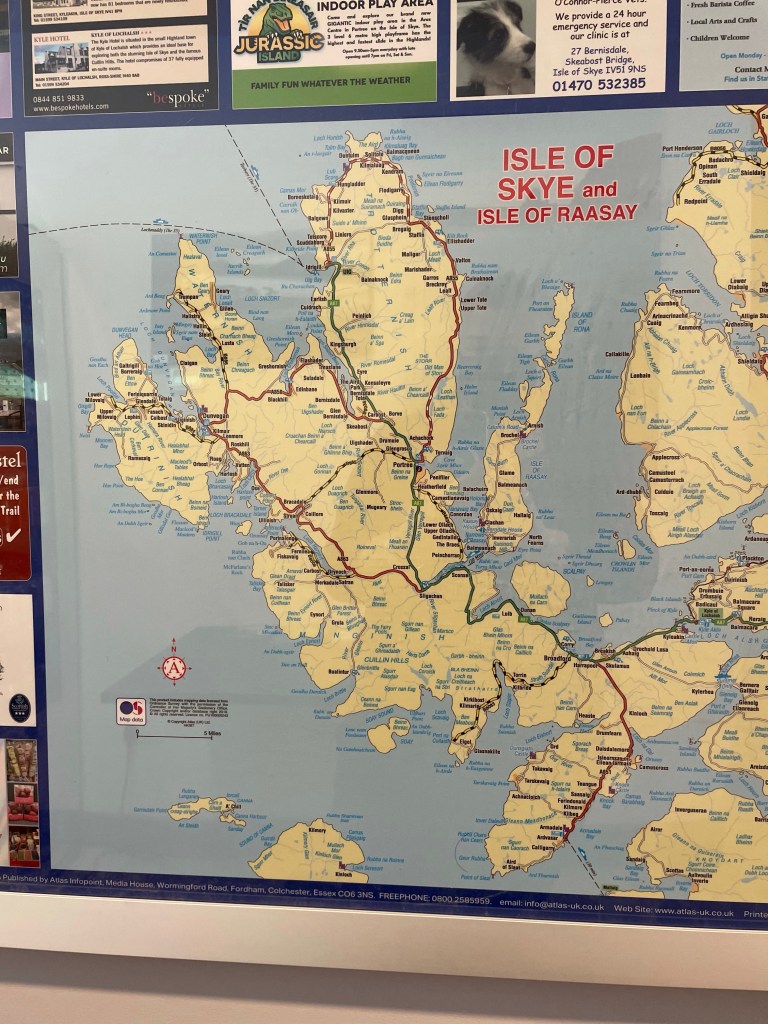 On Friday, Heather and I spent the morning working from our phones and computers right at the hotel. We’re staying here for just a couple nights, using up some of the $7000 dollars in deposit monies from trips canceled in 2020 and 2021 that we won’t be allowed to use on any future tours. In fact, we won’t be able to book with them at all in the future because it’s no longer cost effective for them to work with small travel companies (i.e. less than 60 tours per year). Kind of a bummer, cause I do love this place. It is elegant, comfortable and gracious. I know our travelers will enjoy their time here. It has a spectacular view across to the town of Portree.