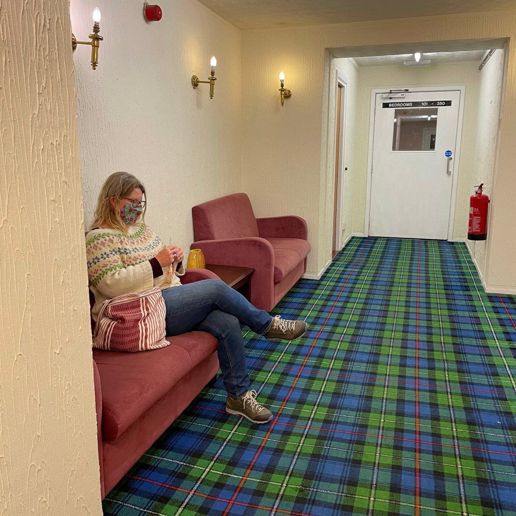 In 2016 I stayed at Hotel Portree on the square. My single room had a window looking out on a section of roof of the hotel. But, I was on the Isle of Skye and couldn’t have been happier. After all, I was outside all day and at night just knitted and watched a terrific program about an asteroid crashing into Glencoe eons ago. My fall RTT trip to Skye is canceled, but when I return to Skye put me in a shepherd’s hut, I’ll not complain.