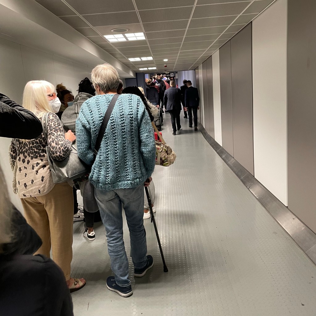 The above was written to you from the airport yesterday. Little did I know that I was about to undergo a very challenging seven hours. Though I was at the airport with plenty of time to spare – hours, actually, as Heather dropped me at Manchester Airport long before I needed to be there for check in – the combination of Easter holiday travelers and limited staff at Manchester airport resulted in a real *excuse the language* clusterfuck. Honestly, I’ve never seen anything like it. Heathrow and O’Hare got nothin’ on Manchester! Wow. Once I’d checked luggage and gotten my boarding pass, it took over an hour to get through security. I kid you not. It was worse than the lines at Disneyland. And no Magic Mountain or Pirates of the Caribbean at the end. Just more delays as the plane had to wait for Manchester staff to disembark a passenger requiring a wheelchair, which delayed boarding for an additional 45 minutes.