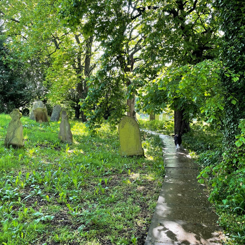 Most walks start here, on the right of way that leads from our street to the churchyard above.