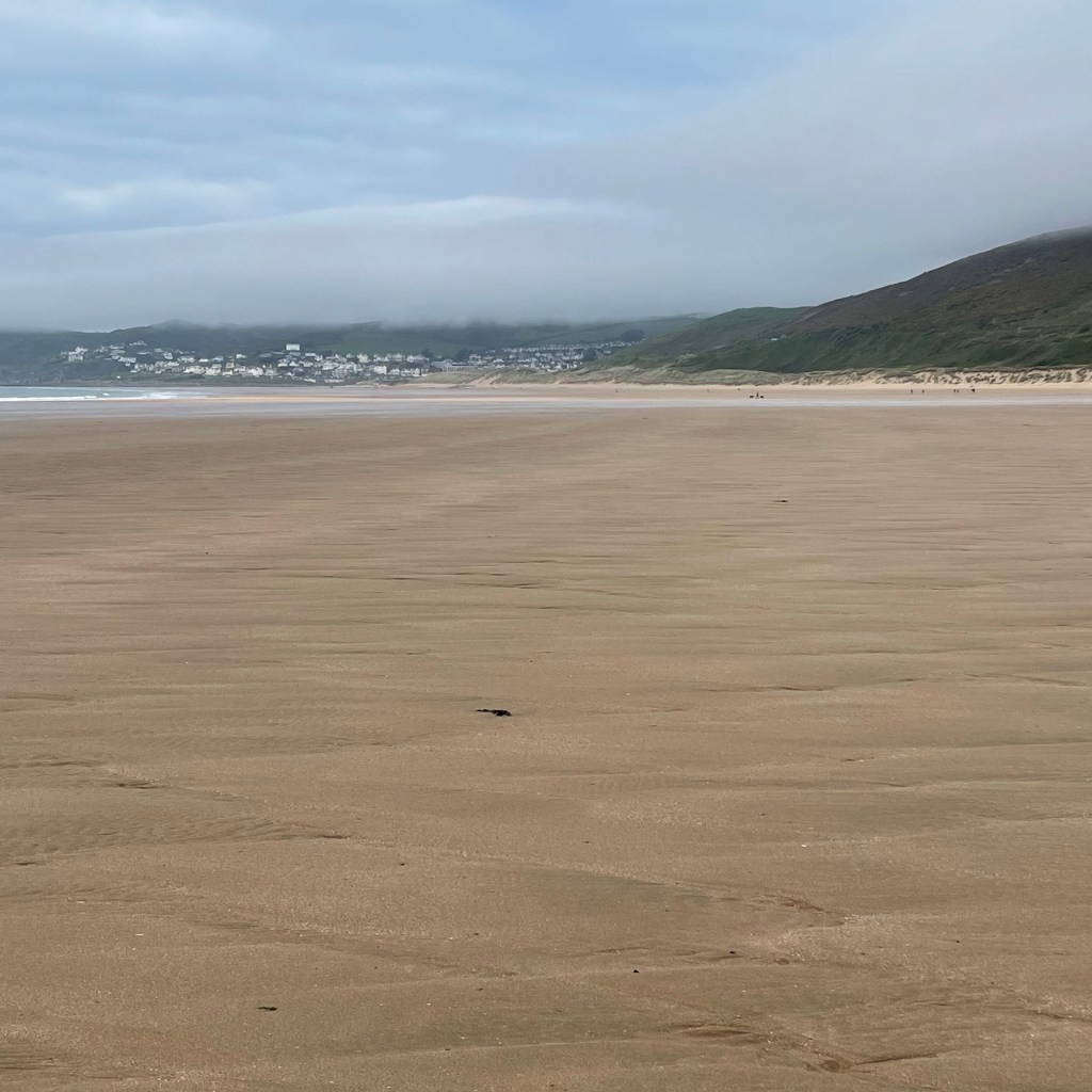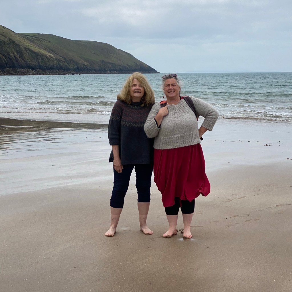 You don’t have to tell me twice to get to the water. Shoes were off and toes were in the Bristol Channel before you could say, uh… cold water! Here I am with our friend Zoe, sheep-keeper and librarian extraordinaire.