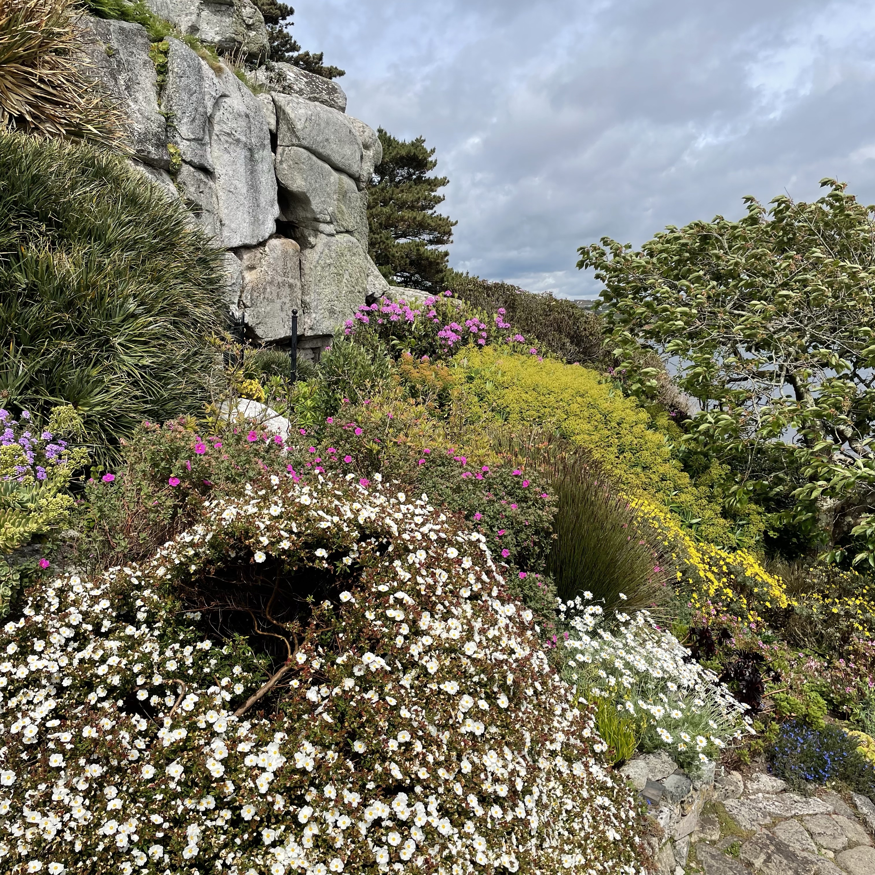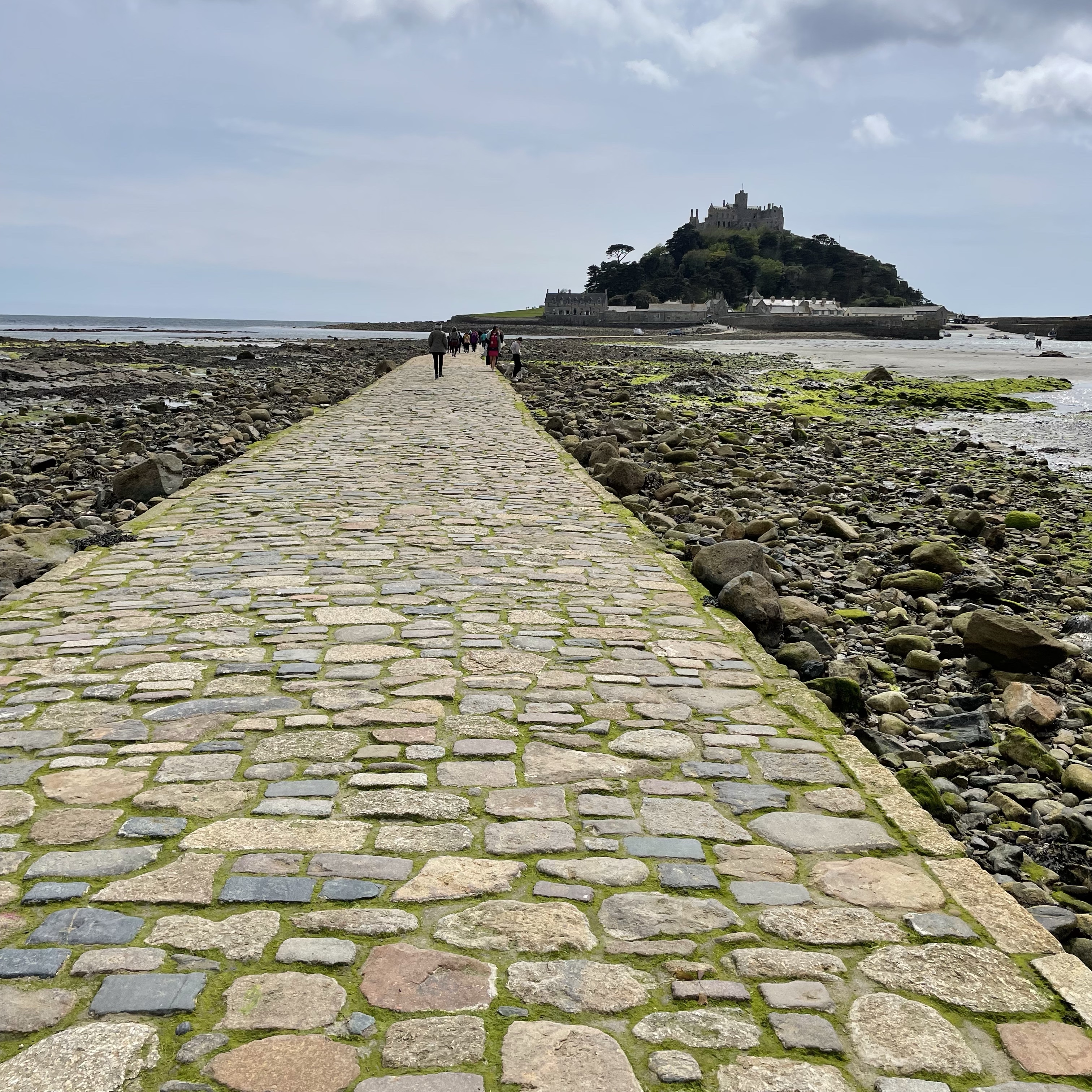 After a couple more hours of driving, we arrived in lovely Marazion, on the southern coast of Cornwall. Our first few hours there were spent exploring St. Michael’s Mount, a mini-me of Mont St. Michel in Normandy. Smaller, closer and far fewer people in residence. But just as fascinating to watch the tide come in and erase the land bridge that allows access part of each day. Most everyone made it up to the top of the mount and saw the castle, chapel and garden. I was in pretty bad shape though, and only made it as far as the gardens. They were spectacular, of course, and though I should have been sitting and resting, I couldn’t help but wander around and revel in all the blooms. I did finally sit though. The sea and the seagulls and the town of Marazion gave me plenty to gaze upon. I let the breeze waft over me. I sniffled and snorked. How to ruin a perfectly beautiful day in Cornwall: have The Evil Cold.