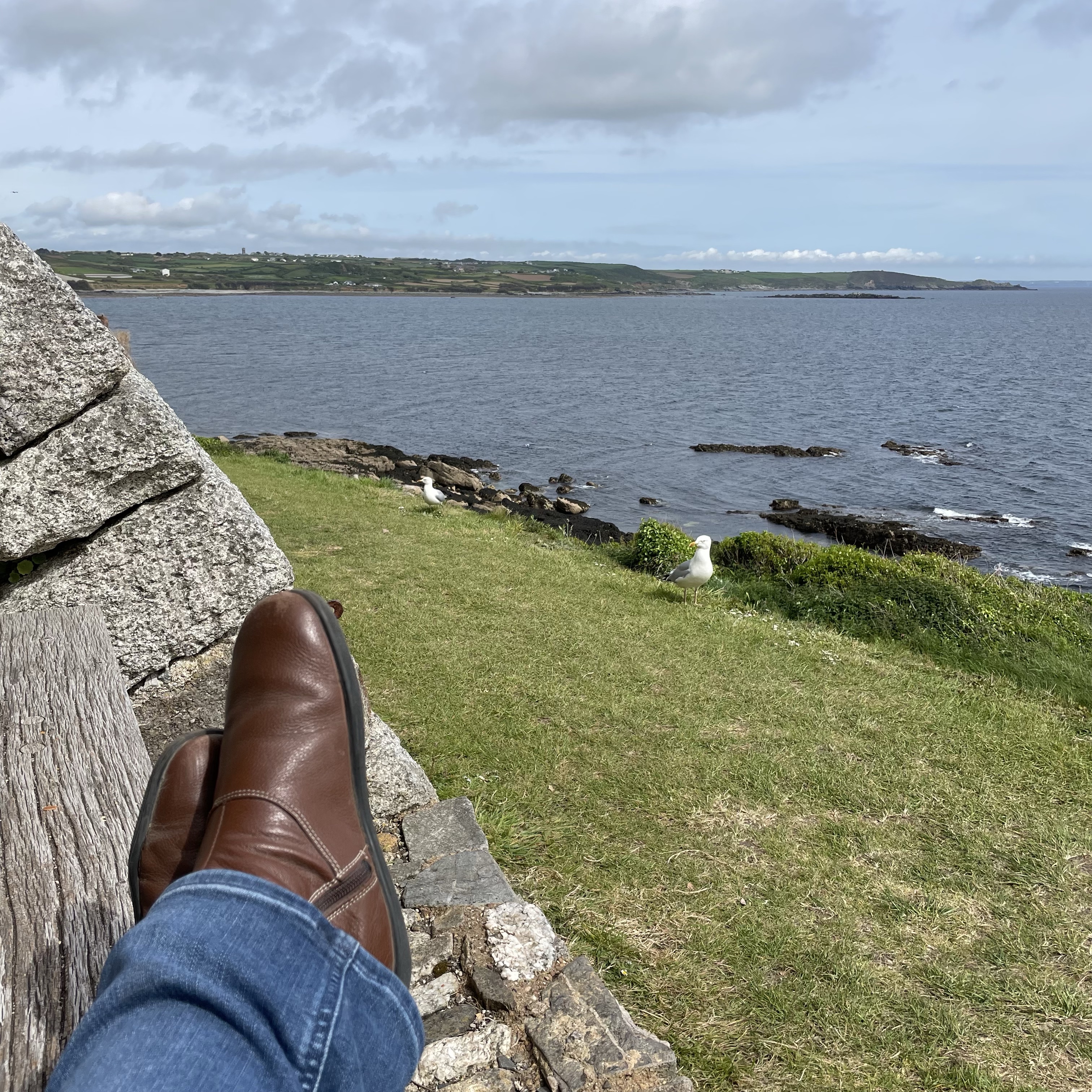 The next day we were headed out, from Pickwell Manor in Devon to points southward, along the Cornish coast. I sat in the back of the bus, kept a mask on and tried to muster the energy to participate. Throat was worse, congestion arriving. All all around me was interesting, beautiful stuff! But I really couldn’t take it in. I felt miserable and was getting more miserable by the moment. A long, uncomfortable bus ride did not improve my state of mind.