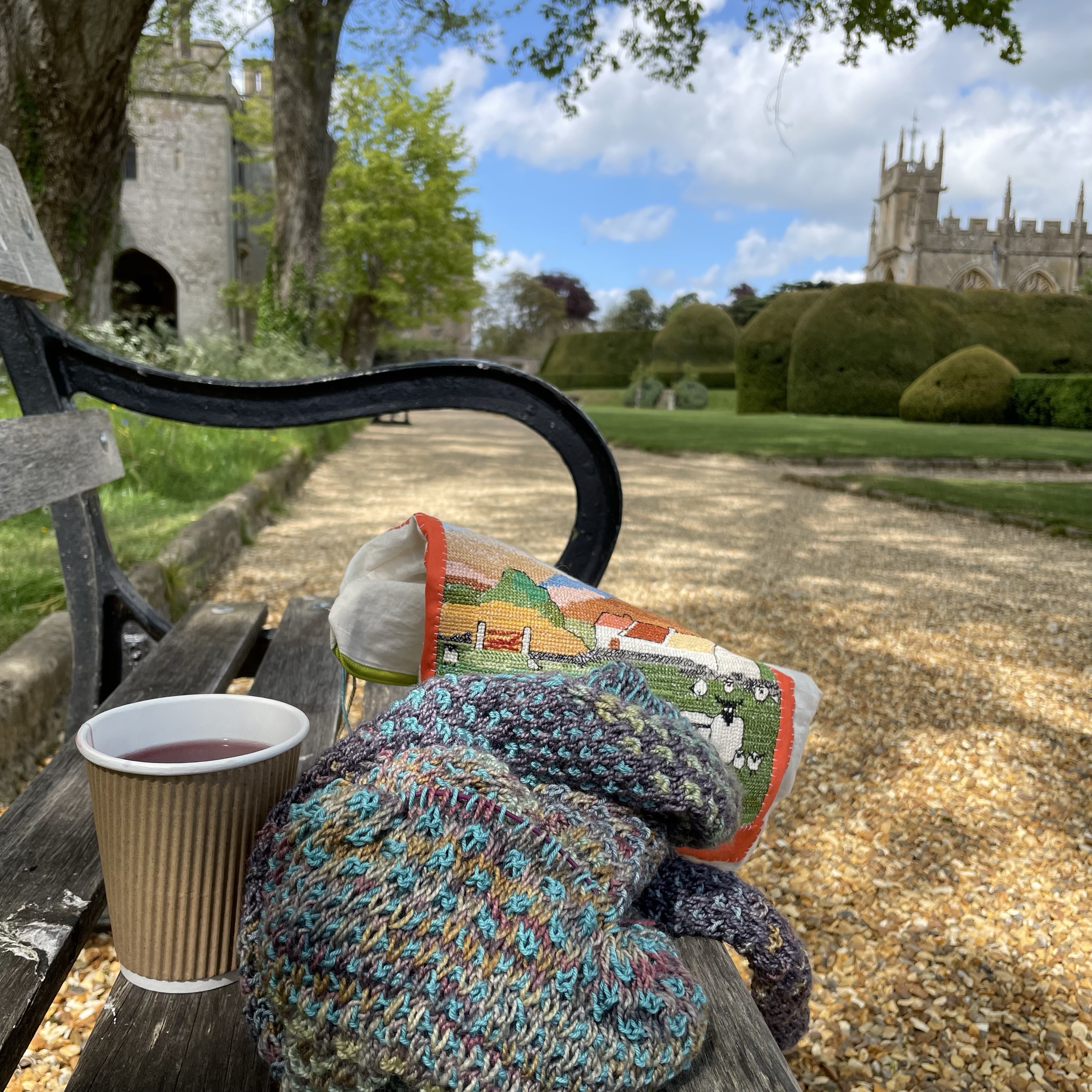 For two days we’d been traveling together on the bus, sharing air and coughs and sniffles with the folks from the Wales tour who had already recovered from The Evil Cold. Debbie, poor thing, was trying to breathe with a cold, through her mask – no small feat. Regardless, I’d let my guard down after weeks in maskless environments and caught it very quickly. I decided to stay back at Pickwell the next day, try to sleep as much as possible and hope a little downtime would keep the cold from really settling in. The group went on to enjoy a walk through a bluebell forest and a visit to John Arbon Textile Mill. (Probably good I didn’t go because I could have bought another suitcase of amazing, ready-to-spin fiber there along with wonderful yarns.) I sipped tea, I did some computer work and I reassured myself.