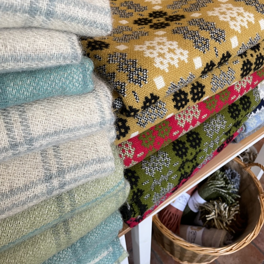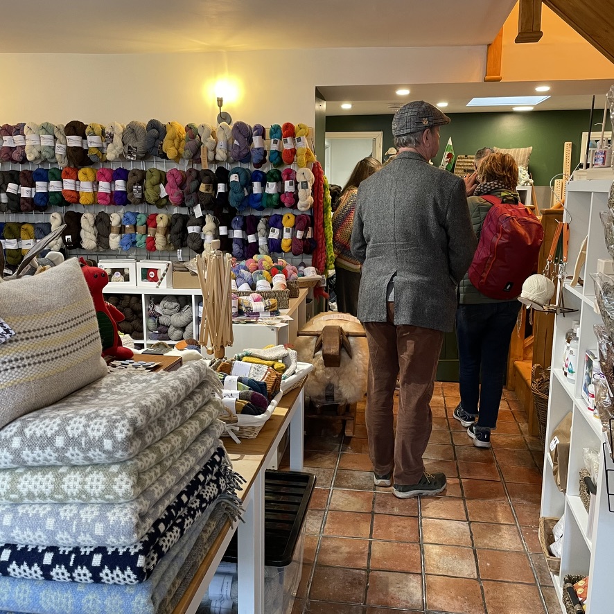 So, it was actually Thursday that we left Druidstone (whew!) and traveled to Newcastle Emlyn to visit the owners of a sweet little place called The Welsh Wool Shop. I know, Newcastle Emlyn is eminently pronounceable. Thus, I give you the names of a few nearby towns, just to keep you on your toes. Try saying Cwm-cou, Llandyfriog and Capel Tygwydd. There you go. Challenging. Anyway, this shop was started by a couple who moved from London to the Welsh countryside because they wanted to farm… somewhere along the way they acquired sheep… then found no one wanted the wool… they started making rugs and other goods from their own wool… then they decided to make their own yarn… then they wondered why there were no Welsh woolen goods in the shops when there are sheep all over the place… (Wales is home to 3 million people and ten million sheep. Really.) and that led to opening a shop featuring all-things-local-and-woolly. A sweet little place, for sure.